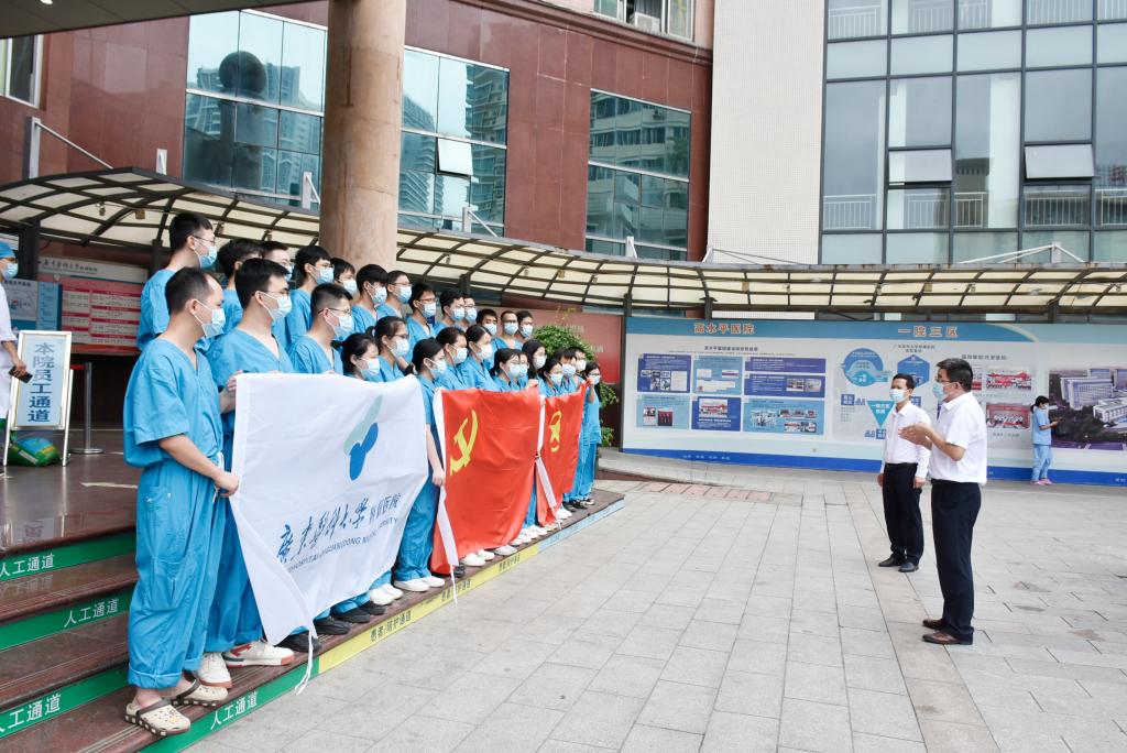 医院党委书记李明意表示,感谢你们在特殊时期,以大无畏的奉献精神挺身而出,守护着湛江人民的健康。希望大家整整齐齐出发,整整齐齐归来,坚信我们可以打赢这场战“疫”。