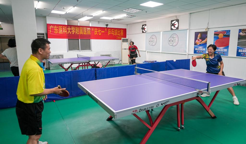 领导嘉宾体验“职工之家”乒乓球室
