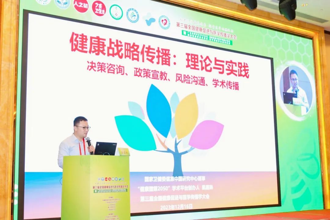 在专题“医学传播与健康促进”环节,中国医师协会医学科学普及分会会长、中国医学科学院肿瘤医院胰胃外科病区主任田艳涛在线上作《抓住机遇,做好新时代肿瘤防控大科普》的主旨报告。南方医科大学卫生管理学院院长王冬作《传播渠道对健康行为的影响》的主旨报告。复旦大学公共卫生学院副教授高俊岭作《老龄化背景下的健康传播》的主旨报告。国家卫健委健康中国研究中心理事、“健康国策2050”学术平台创办人、中国医师协会健康传播工作委员会顾问、中国人口学会健康战略传播专委会主委梁嘉琳作《推进健康战略传播,支持健康中国改革发展》的主旨报告,该专题由广东省生殖医院党委书记、院长、省卫生经济学会健康促进与传播专委会副主委李观明主持。