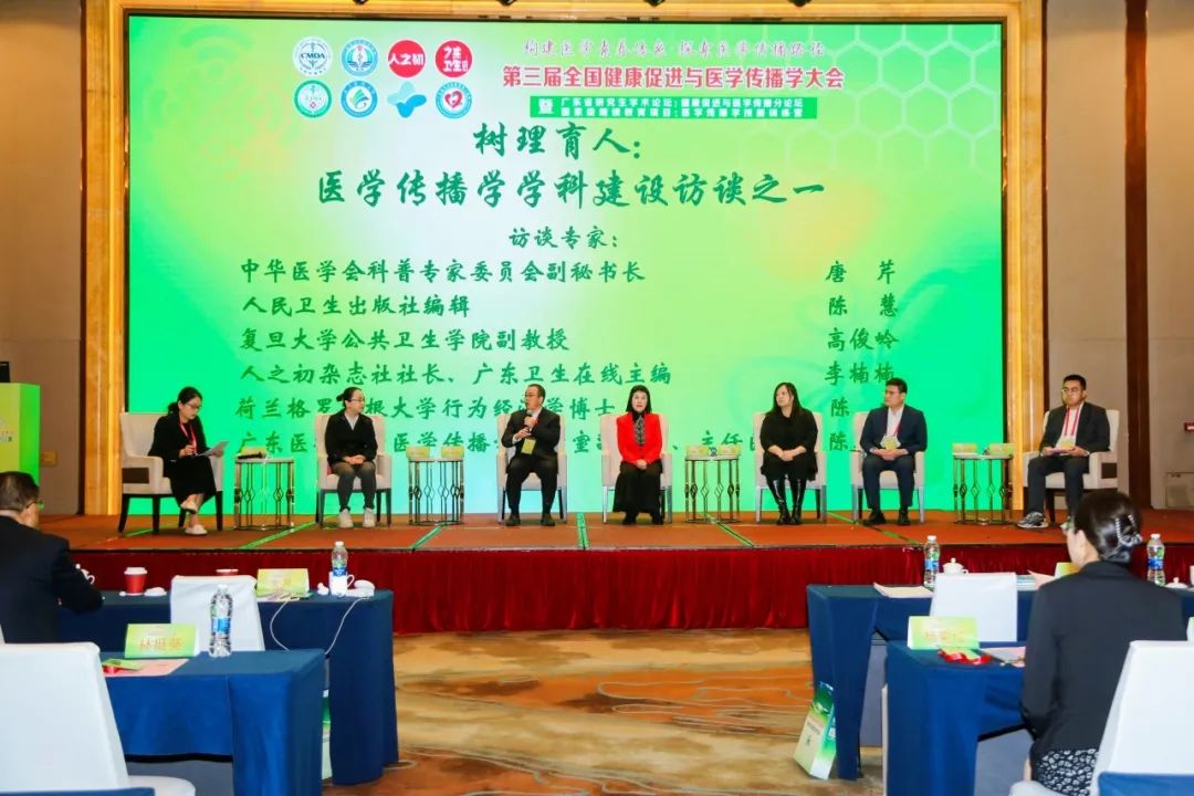 本次会议共进行了两个焦点访谈,在《树理育人:医学传播学学科建设访谈之一》的探讨中,邀请了中华医学会科普专家委员会副秘书长、中华医学会科学普及部部长唐芹、人民卫生出版社编辑陈慧、复旦大学公共卫生学院副教授高俊岭、人之初杂志社社长、广东卫生在线主编李楠楠、荷兰格罗宁根大学行为经济学博士陈榆、广东医科大学医学传播学教研室副主任陈欣欣作为讨论嘉宾,围绕医学科普的现状和未来发展以及如何通过理论研究、搭建平台和学科建设等推动医学传播学的发展进行深入探讨;在《践行赋能:医学传播学学科建设访谈之二》的探讨中,邀请了湛江市医学会会长陈志辉、白求恩医学出版(健康传播)专委会秘书长王占英、广东医科大学附属医院党委副书记、纪委书记林挺葵、湛江中心人民医院急诊学科带头人周宁、中山市海滨医院院长全应锋、广东省第二人民医院规划发展部主任杨哲、广东医科大学2023届医学传播学硕士研究生刘甜等专家围绕医学传播学学科如何开展实践应用、如何做出好的医学科普作品、做好健康促进与医学传播等问题进行探讨。广东医科大学附属医院社会工作部副部长简璐诗主持焦点访谈环节。