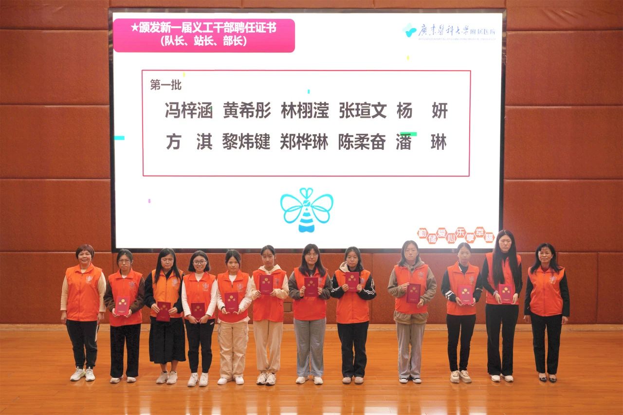 大会对年度优秀义工、优秀暑期义工、优秀义工干部、星级义工、“医学传播学”实践项目、病友会项目、健康卫生日项目等先进个人和集体代表进行表彰,以及为新一届指导老师、义工干部颁发聘任证书。