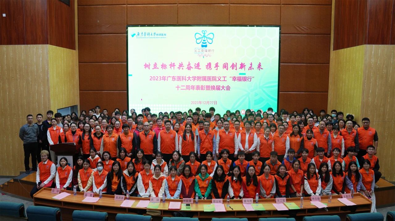 12月27日晚,广东医科大学附属医院义工“幸福银行”举行十二周年表彰暨换届大会。医院党委书记蔡定彬,党委副书记、纪委书记林挺葵,湛江市35小副校长、义工“幸福银行”义教服务队队长童海鹰,医院相关部门负责人,遂溪医院义工“幸福银行”分行、广东医科大学附属东莞第一医院及医院义工“幸福银行”各服务队、服务站指导老师代表、医务社工、义工代表参会。
