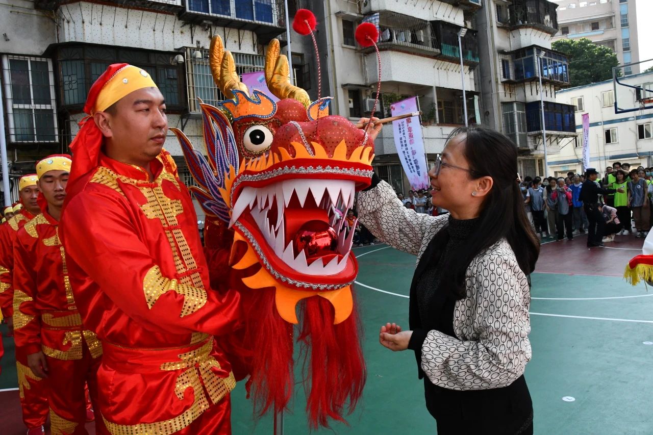 在开场节目环节,由湛江市总工会党组成员、副主席朱凌静,广东医科大学工会专职副主席李黎为舞龙点睛