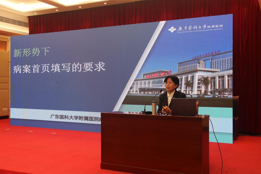 仪式结束后,广东医科大学附属医院专家为坡头区医疗机构负责病案管理、医疗安全、护理质量等方面的人员进行授课,坡头区卫生健康局党委委员、副局长黄木贵主持培训班。我院病案室主任陈祝萍进行题为《新形势下对病案首页的填写要求》的专题授课,医务部部长龙霄翱进行题为《新形势下医疗质量安全管理》的专题授课,主任护师肖生翠进行题为《院科两级护理质量管理与持续改进》的专题授课。