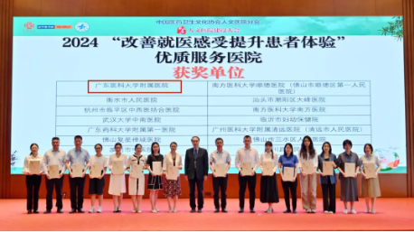 2024年5月10日至12日由中国医药卫生文化协会人文医院分会和《医学参考报医院人文专刊》主办的第二届人文医院建设大会在石家庄举行。广东医科大学附属医院荣获2024年“改善就医感受提升患者体验”优质服务案例二等奖。