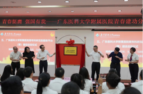 会上举行了广东医科大学附属医院青年科研互助服务平台(筹)建设启动仪式,该项目是医院重点工作“实施青年托举工程,打造青年成长平台”的有力抓手,旨在提升科研互助平台的管理与服务,促进青年科研人员互相交流工作和学习经验,更好地为医学科研服务。
