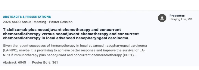 此次入选ASCO壁报展示,在国际顶级肿瘤学术舞台上彰显了我院在鼻咽癌临床研究领域的创新力量。肿瘤医院头颈部肿瘤专科未来将不断提升临床诊疗实力,临床研究能力和转化医学能力,以期为鼻咽癌患者提供更好的个体化治疗方案和医疗服务。