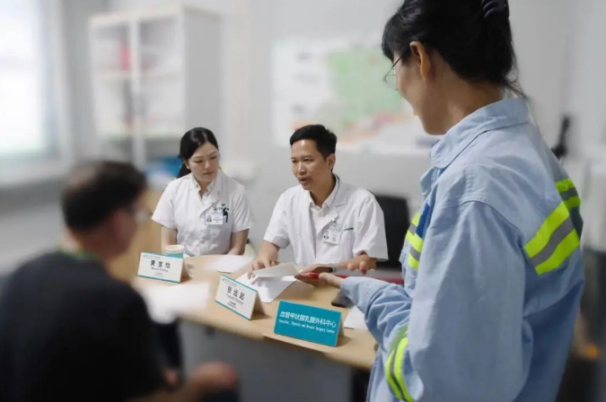 为深化企业健康文化,提升员工健康意识与防病知识,7月31日,广东医科大学附属医院以“共建健康企业”为契机,组织医护团队赴巴斯夫一体化基地(广东)有限公司举开展大型义诊活动,将优质的医疗服务直接送到员工身边。此次活动由广东医科大学第一临床医学院常务副院长、医院党委委员、副院长张远起带队,来自不同科室的11名资深医生与4名专业护士参与,全力保障员工健康。