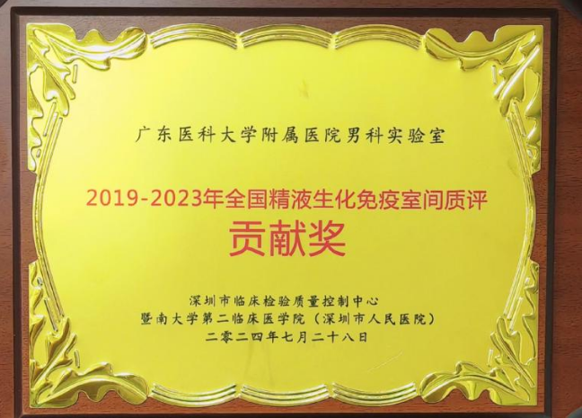 7月26日至28日,广东医科大学附属医院生殖医学中心男科实验室工作人员参加了由深圳市人民医院举办的男性不育实验诊断技术质量管理与临床应用研讨班。本次会议还对2019年至2023年全国精液生化免疫室间质评进行了总结及表彰,我院生殖医学中心男科实验室荣获贡献奖,该奖意味着该男科实验室在以往的室间质控中表现优异、成绩突出,生化检测操作稳定,结果准确可靠,可为临床提供有效的临床参考数据。