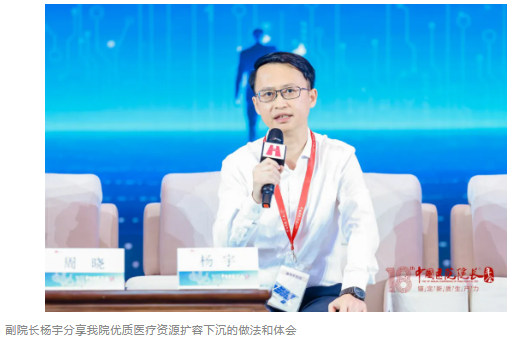 在年会的“标杆力量:高质量发展的创新与突破”分论坛上,副院长杨宇受邀参加“互动对话”环节,深入探讨了我院在优质医疗资源扩容下沉方面的创新举措。他介绍道,我院自2014年起在粤西地区率先建立医疗联合体,2020年又首推“政府—医院托管型医疗合作模式”,与遂溪、麻章、雷州三地政府合作办医,建立了粤西首个医疗集团。经过近10年的发展,医联体成员单位已达58家,形成了多元化的合作模式,为区域医疗健康事业发展发挥了重要作用。
