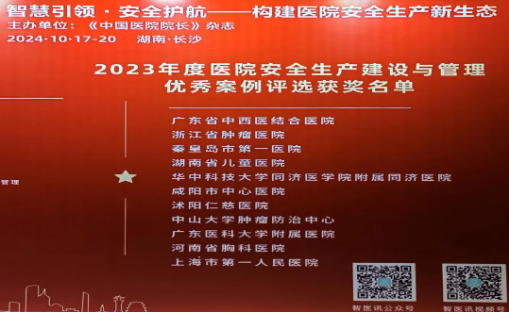10月19日,以“智慧引领 安全护航——构建医院安全生产新生态”为主题的2024第七届医院安全生产大会在湖南长沙举行。会上公布了2023年度医院安全生产建设与管理优秀案例,并举行了颁奖仪式。医院安全保卫部申报的《医院危险化学品安全管理》获优秀案例奖。
