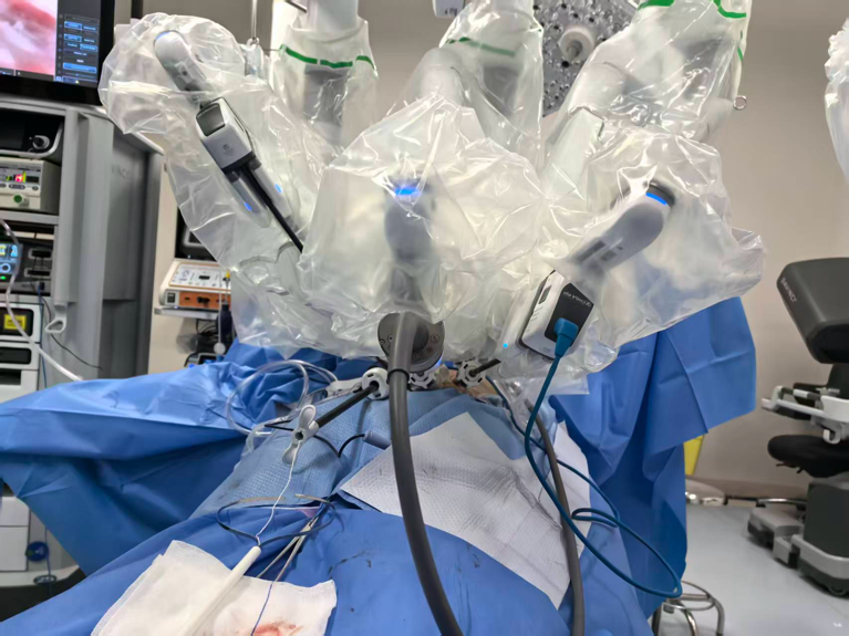 在本次手术中主刀团队通过剑突下单通道+双侧肋弓辅助孔的独特入路,借助达芬奇机器人系统实现三重突破: