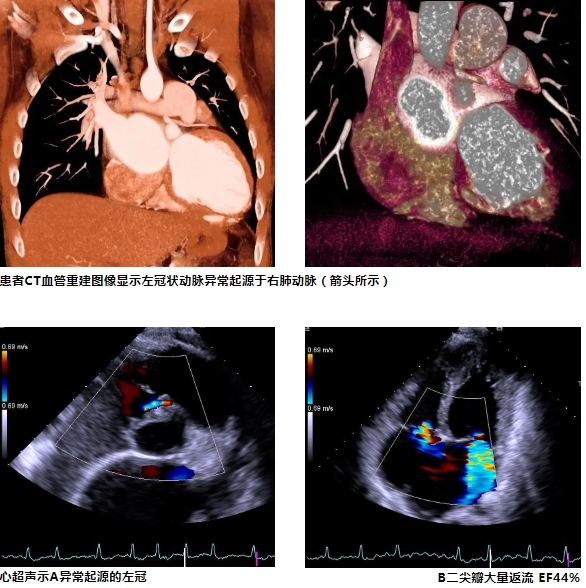 在新生儿期,由于肺血管阻力高,肺动脉内低氧合静脉血经由异常起源的左冠状动脉灌注心肌,血氧含量和血流量少,左室心肌缺氧性灌注,如侧支循环不丰富,未得到及时救治,婴儿型患儿多在1岁以内死亡。而符先生则因为拥有较好的侧支循环才得以存活至成年。但侧支循环并不能完全替代正常冠脉供血,出生后右冠状动脉经侧支循环流向左冠脉的供血最终流向肺动脉,冠脉窃血情况致使患者晚期不可避免出现心肌缺血梗死,影响左心的收缩功能,