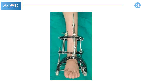该患者入院后,创伤骨科副主任(主持工作)吴浩俊主任医师组织创伤骨科足踝技术团队成员,认真研究该患者病情,并制定了最佳的手术方案,在实施软组织松解和肌力平衡手术后,利用Ilizarov环形外固定架对肢体畸形进一步治疗,该方法较为微创,并发症少。近年来,我院创伤骨科足踝技术团队已为多名踇外翻畸形、创伤性足下垂、陈旧性踝部骨折畸形等患者实施了矫形手术,均取得满意疗效。随着ilizarov技术的逐步开展及应用,将为广大脑瘫马蹄足畸形患者带来福音。