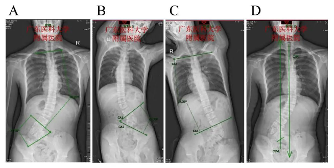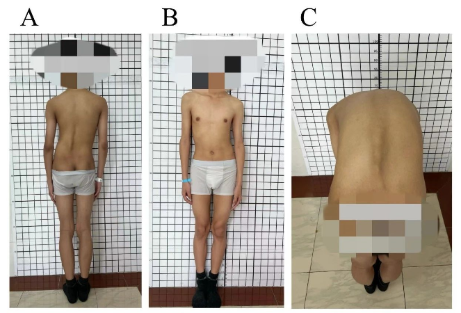 患者,男性,14岁,“被发现高低肩、脊柱侧凸1年余”入院,查体:步态正常。高低肩(右高左低),脊柱腰段向左侧侧凸,腰弯隆起。四肢皮肤感觉、肌张力、肌力正常。