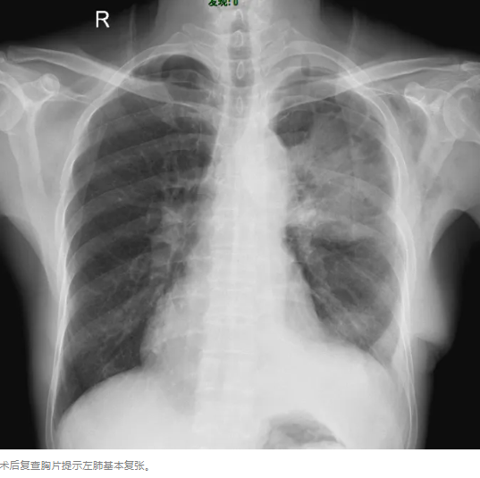 1、患者左肺基本复张,明显缓解患者气促症状,提高术后生活治疗;