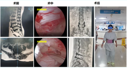 技术特点:该患者术中神经完全被瘢痕组织包绕,神经根严重粘连,传统开放手术视野受限,极易造成硬膜囊撕裂,神经损伤,但在UBE下水介质可清晰放大视野,从而安全、微创完成手术。术后患者左下肢疼痛明显缓解,术后第二天即可佩戴支具起床活动,术后三天出院。左下肢VAS评分1分。