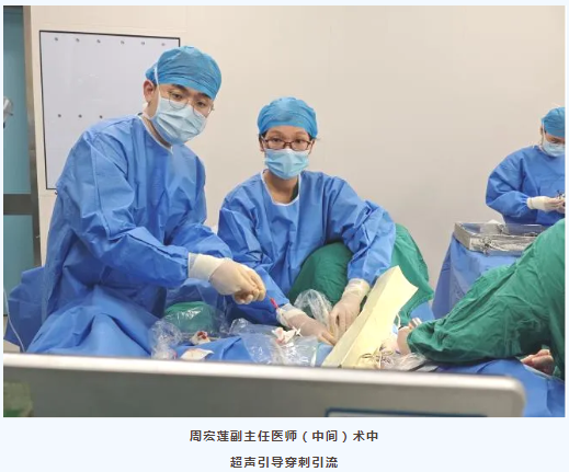 同时,周宏莲副主任医师及孔魏医师为月月实施了超声引导下盆腔脓肿穿刺抽脓、灌洗及置管引流。