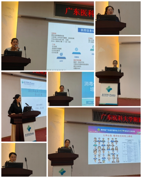 本次进修学习汇报会由2022年7名外出进修返院的护理人员进行了汇报,她们分享了自己所见所思所想,从多角度、全方位地向参会人员展示了各自所进修医院的院貌、专业的技术、先进的仪器设备、先进的护理理念、统一规范的管理方式、先进的教学理念等,同时将自己后期计划及在科室开展的项目进行汇报。