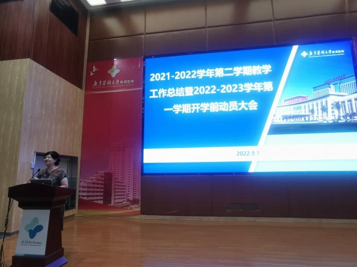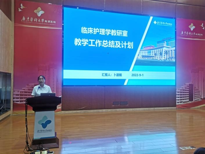 临床护理学教研室于2022年9月1日召开了2021-2022学年第二学期总结暨2022-2023学年第一学期开学前教学动员工作会议。会议由教研室副主任卜淑娟主持,参会人员为临床护理学教研室教研组组长、教学督导组成员、课程负责人、全体授课教师96人数。