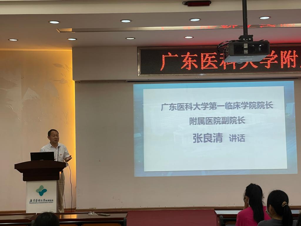 广东医科大学第一临床医学院长、医院副院长张良清对各位实习生的到来表示热烈欢迎,教育引导同学们珍惜学习机会,在学习基本临床技能、提高临床思维能力和临床操作能力的同时,坚定理想信念,树立正确的世界观、人生观、价值观,恪守医德规范,为个人的职业生涯打好坚实的基础。