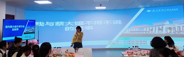 李小花老师分享了《爱的力量》,里面讲了一位因男友隐瞒病情,年轻女性患者被传染到HIV后精神萎靡,不愿与他人交谈,拒绝继续接受治疗,甚至有时会有轻生的念头。小花老师普及了艾滋病的相关知识,讲述一些积极励志的案例,并事后致电给家属消除他们恐惧心理,消除家庭成员与她之间的隔阂和矛盾,几个月过去了,她按时来复诊取药,规范服药,有时还能聊聊生活,聊聊工作,不再惶恐,勇敢面对。