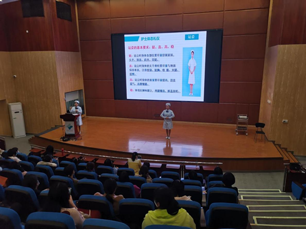 本次培训由主任护师周萍主讲,她以“护理礼仪如何呈现”为主题,采用图文并茂的PPT形式从护士的服饰礼仪、体态礼仪等方面进行讲述,并进行了现场示范。示范者规范的服装,整洁的仪表,优雅的举止,自信的步伐,充分展示了护理礼仪的内涵和精髓,赢得观众们的一致认可,现场掌声不断,气氛热烈。
