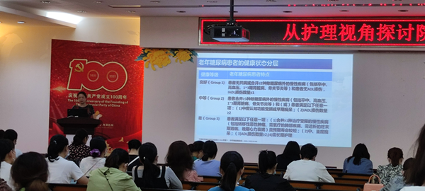 培训由洪玉芬护士长主持,黄春燕护士长和杨晓红糖尿病专科护士担任授课老师,黄春燕护士长分析了老年糖尿病的流行病学及特点,老年糖尿病患者的综合评估与健康状态分层,重点讲解了老年糖尿病患者的血糖个体化需求,最后结合前面所讲知识分享了基于老年综合评估下的个案管理,让大家对老年患者的血糖管理有了更深入的认识。杨晓红专科护士结合案例重点讲解院内血糖管理中泵的应用以及常见报警处理。