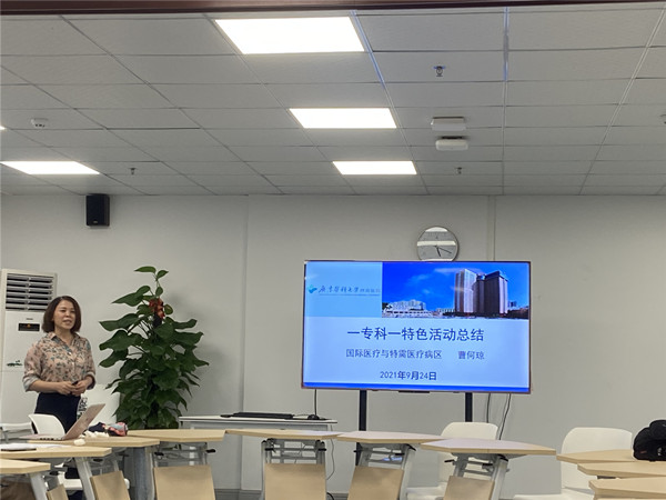 会上,14个病区护士长分别就科室“一专科一特色”工作进行了总结汇报,汇报内容丰富、具有专科特色。其中疾病类有:妇科的“针”到痛除、产科的“中药穴位敷贴-促进产后康复及缓解疼痛”、儿童综合内科的“冲掉烦恼,畅想呼吸自由”、儿童血液肿瘤病房的“提高患儿及家属PICC导管的自我管理能力”、新生儿专科的“袋鼠式护理在早产儿护理中的应用”、儿童重症专科的“儿童血液净化技术护理精细化管理”、老年医学科一区的“改良型中等长度导管在老年患者中的临床应用”、老年医学科二区的“阿尔茨海默病认知功能训练”、康复医学科的“吞咽障碍患者的营养管理”、中医科的“罐经之路,健康腰颈(平衡火罐在颈项、腰背酸痛患者的应用)”;服务类有:老年医学科重症监护室的“优化老年重症患者人文关怀服务”、生殖医学中心的“阶段性标准化健康教育在辅助生殖技术助孕患者的使用”、国际医疗与特需医疗病区的“打造‘3H’服务,塑粤西服务品牌”、国际医疗与特需医疗门诊的“三优服务”、麻醉手术中心的“优化围手术期患者的术前访视”和介入手术室“基于病人为中心提高实施患者的舒适体验”等,通过开展“一专科一特色”护理服务模式,各专科的病人体验到更为全面、细致、专业的护理服务。