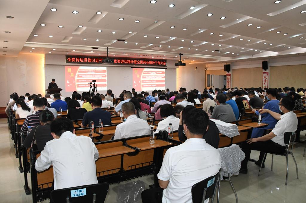 李明意书记强调,深入学习宣传贯彻全国两会精神,是当前全院上下的重要政治任务,广大干部职工要深刻领会本次大会取得的重要成果,把学习宣传全国两会精神和学习贯彻党的二十大精神结合起来,切实提高政治站位和思想认识,把学习成果转化为推进医院高质量发展的强大精神动力,以早日建成“国家百强医院”为奋斗目标,以建设国家省级区域医疗中心为抓手,围绕职代会确定的“学科建设提升年”这一发展方向,把智慧和力量凝聚到落实职代会确定的目标任务上来,将发展的油门踩起来、拉高的标杆立起来、赶超的速度提起来,实干笃行、赓续奋进、竞标争先、比学赶超,抓好医院各项重点、难点工作,不断开创医院各项工作新局面。(图文/刘喆)