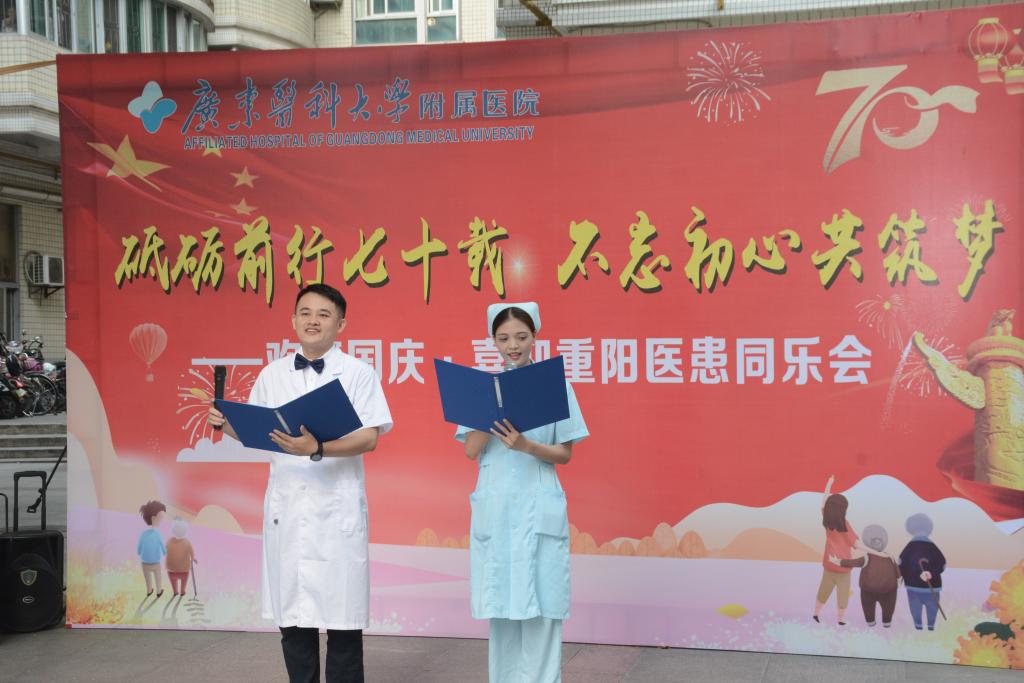 9月27日,为践行“不忘初心、牢记使命”主题教育,“砥砺前行七十载 不忘初心共筑梦”——欢度国庆·喜迎重阳医患同乐会,分别在我院门诊大厅及老年病区小广场举办,活动的气氛受到医务工作者、患者及家属的欢迎。