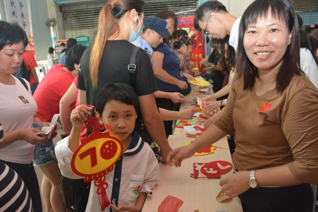 当天上午,门诊大厅内,工作人员向患者及家属发放小国旗和祝福贺卡,表达了对中华人民共和国成立70周年的美好祝福。同时,还与患者和家属一起DIY制作以“国庆”和“重阳”为主题的手工挂件。一首《我和我的祖国》的快闪将活动推向高潮,现场观众手拿国旗一同高歌,整个门诊大厅沉浸在红旗飘飘的海洋里。