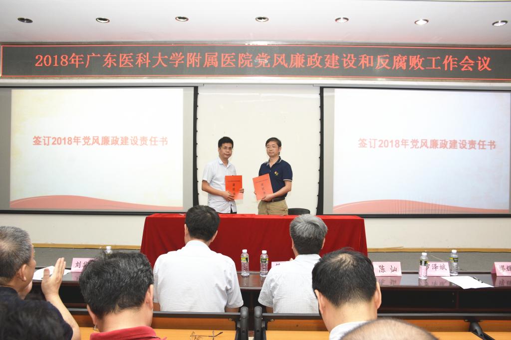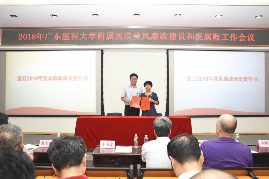 会上,李明意同志还分别与副职院领导代表张良清同志、党支部书记代表黎东明同志签订了《党风廉政建设责任书》,分管院领导代表刘华锋同志与其分管的临床科室主任代表谭建新同志签订了《党风廉政建设责任书》。(文、图/陈冰倩     审/郑春凤)