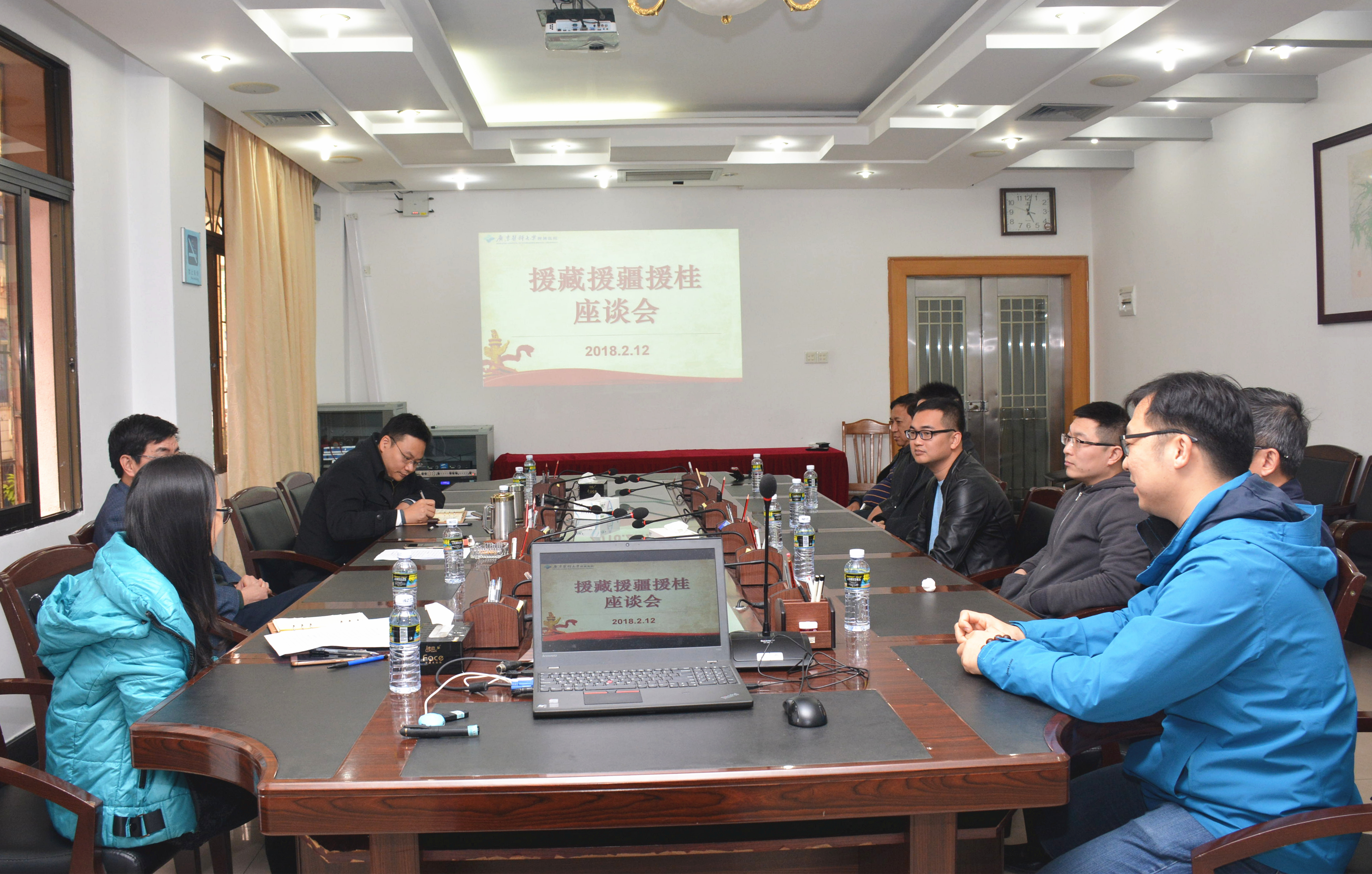 2月12日下午,医院召开援藏援疆援桂座谈会,党委书记、院长李明意,党委副书记、纪委书记林挺葵,党群部部长李黎及援藏援疆援桂医疗队员参加座谈会。