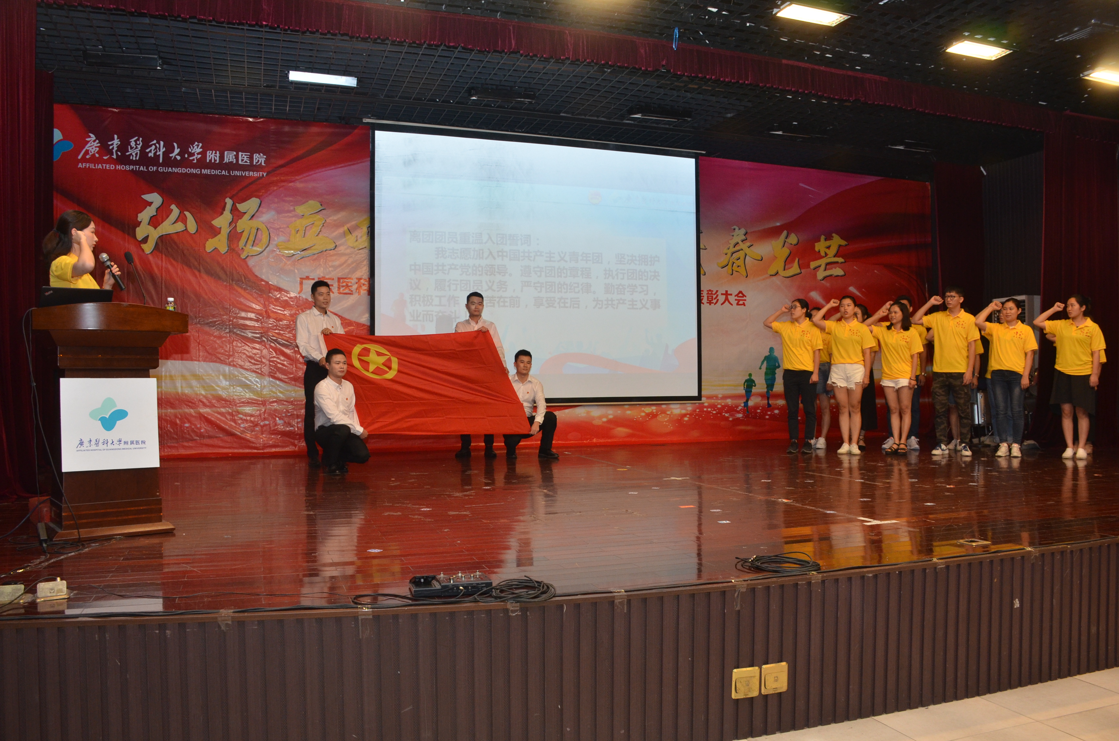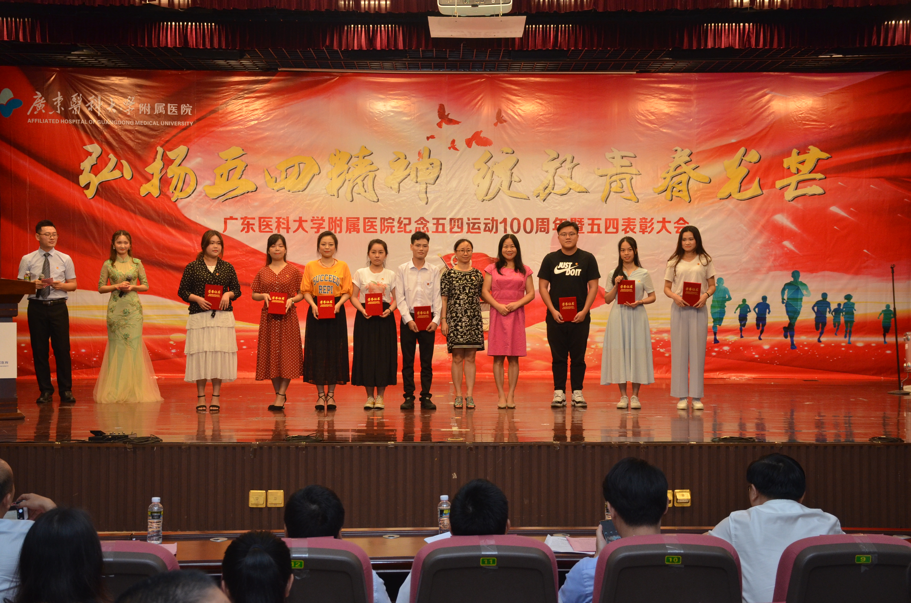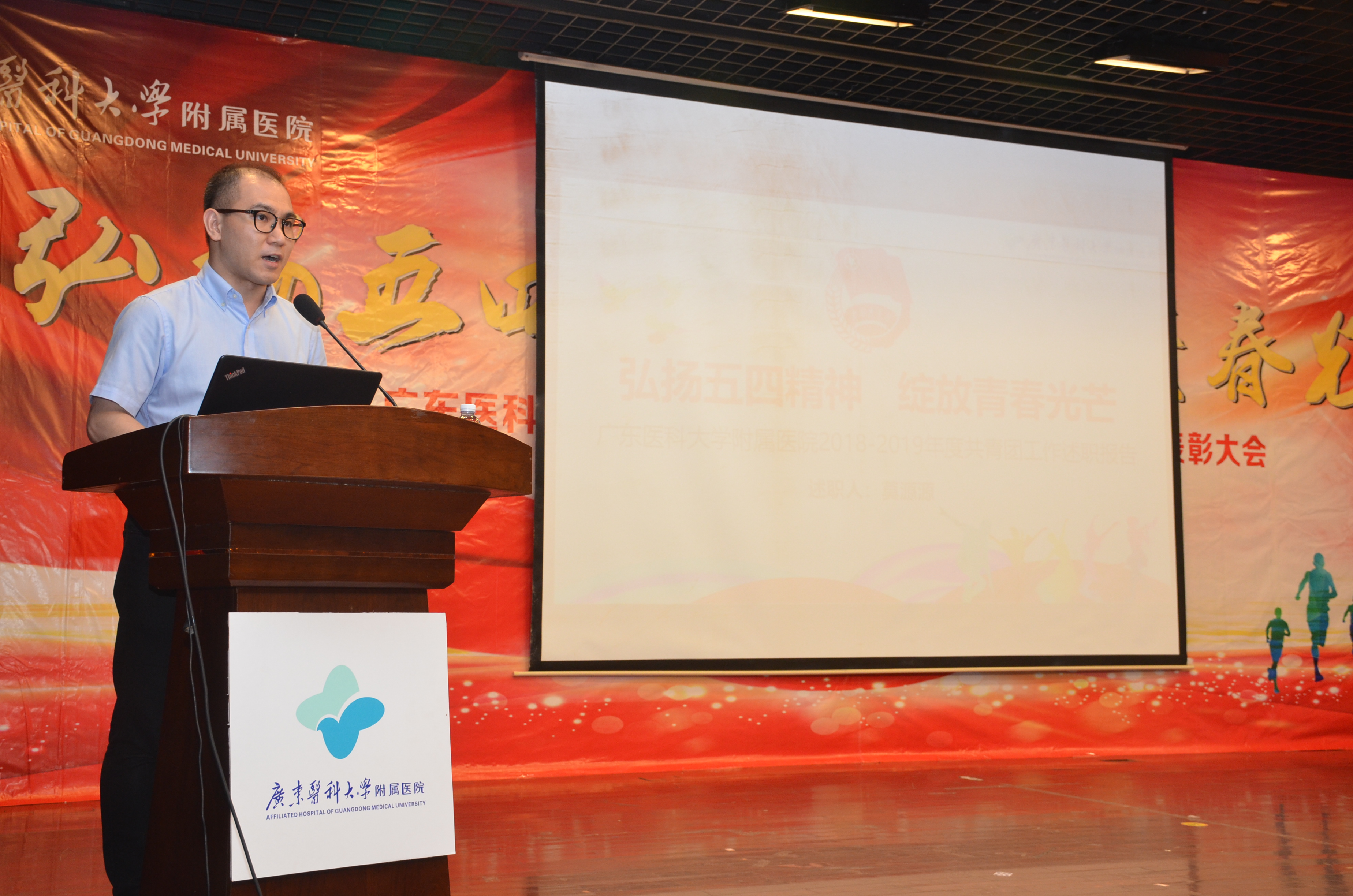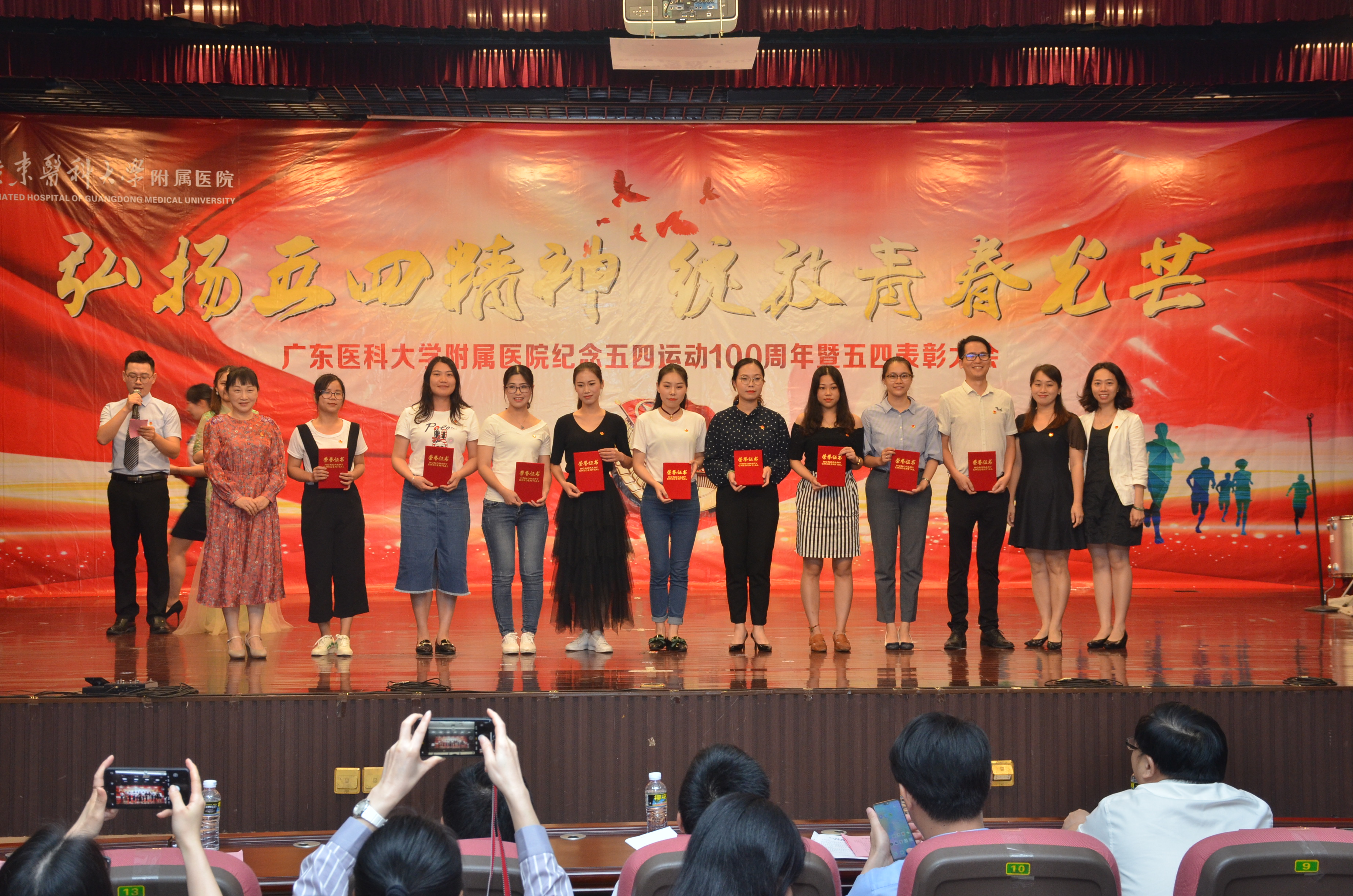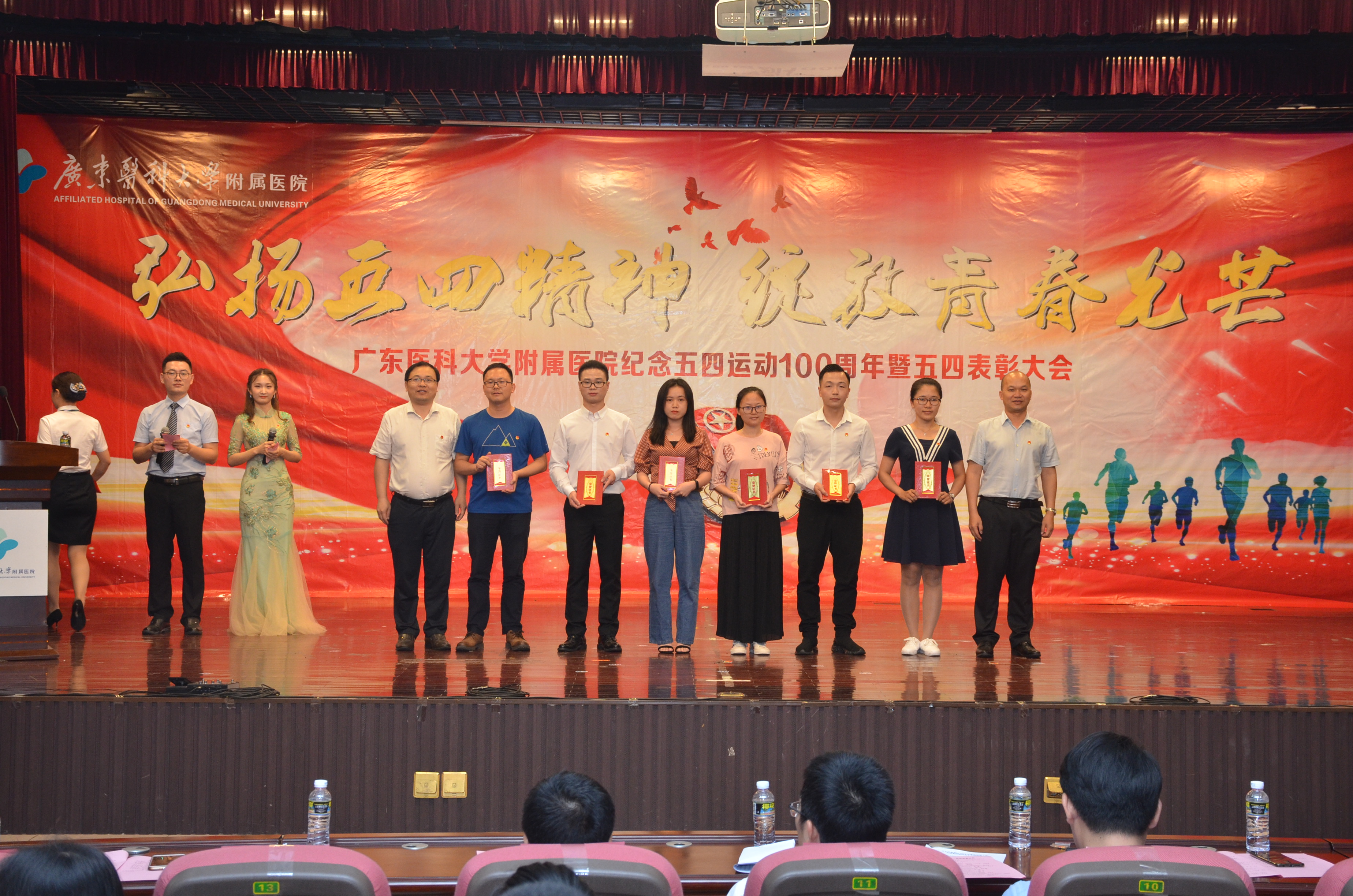 月25日晚,我院在广东医科大学湛江校区举行“弘扬五四精神·绽放青春光芒”纪念五四运动100周年暨五四表彰大会。共青团湛江市委副书记李延忠,医院领导,临床科室主任代表、职能部门负责人代表,党支部书记代表,全体团干、团员青年代表,义工代表以及学生代表参加会议。