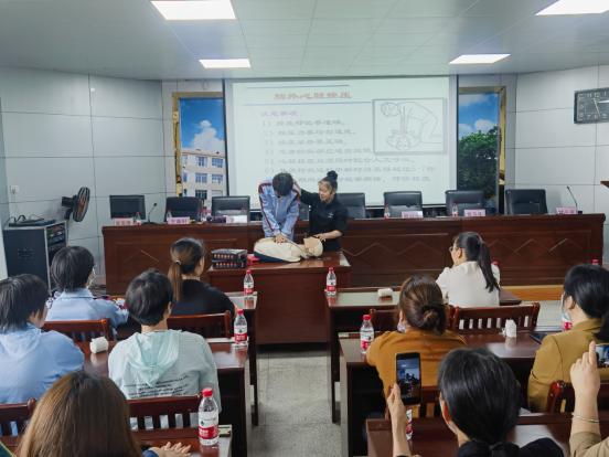 为贯彻落实习近平总书记关于注重家庭家教家风建设的重要指示精神,引领学习好家风,传承好家教,建设好家庭,同时更好推广全民参与自救互救的理念,积极推动应急救护普及下基层、走一线,助力北坡镇乡村振兴工作,3月18日上午,广东医科大学附属医院工会联合北坡镇政府及驻北坡乡村振兴工作队特别邀请广东医科大学附属医院硕士研究生导师文若兰教授及其团队在北坡中学科学馆三楼会议室讲授“关爱生命,‘救’在身边”暨应急救护知识与技能培训。广东医科大学附属医院工会会员代表、北坡中学教职工、学生及家长代表、新城社区居委会代表共计100余人现场听课。