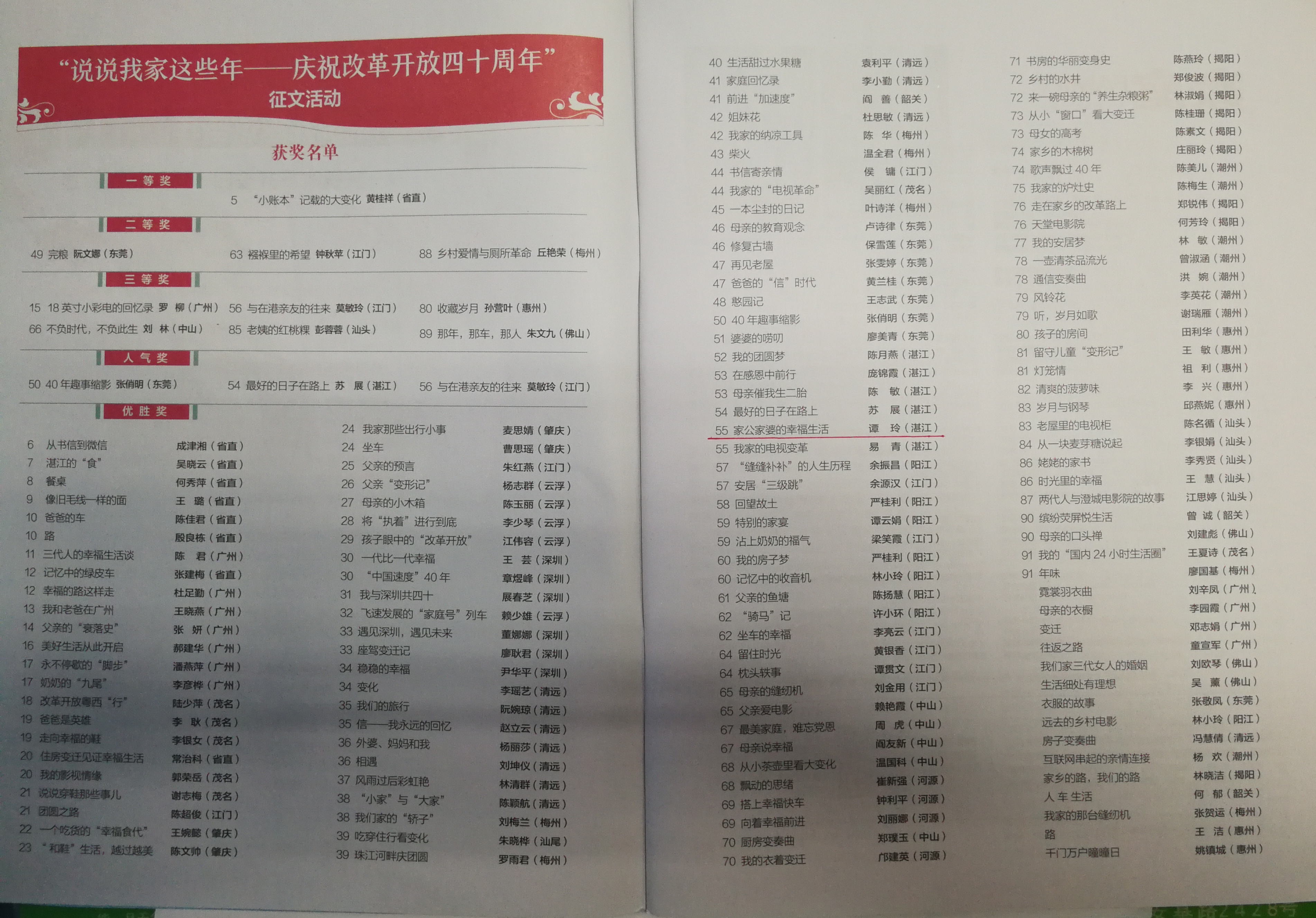 谭玲、陈月燕参加庆祝改革开放40周年征文活动获佳绩