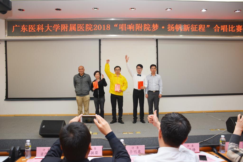 盛世抒豪情,激越写华章,12月18日晚,“唱响附院梦 扬帆新征程”医院工会小组合唱比赛在学术报告厅举行,来自医院各职能部门、临床(医技)等200多名教职工用美丽的歌声表达着迈进新时代、履行新使命、开启新征程的万丈豪情,并用实际行动学习贯彻落实党的十九大精神、习近平总书记视察广东讲话精神,向我国改革开放40周年华诞献上一份厚礼。医院党委书记、院长李明意,党委副书记、纪委书记、工会主席林挺葵,副院长刘华锋,调研员梁伟钧,工会常务副主席文若兰、宣传部部长马晓鹂、离退休管理部部长罗鉴兰出席活动并担任合唱比赛评委。