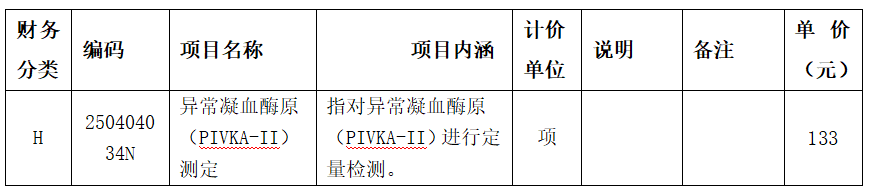 根据《湛江市医疗保障局转发广东省医疗保障局关于公布腔内动态三维子宫输卵管超声造影等新增和修订医疗服务项目价格的通知》(湛医保函〔2023〕238号)规定,我院对“异常凝血酶原(PIVKA-II)测定”项目进行成本测算,遵循公平合法、诚实信用原则,合理制定和调整价格,现按要求进行公示: