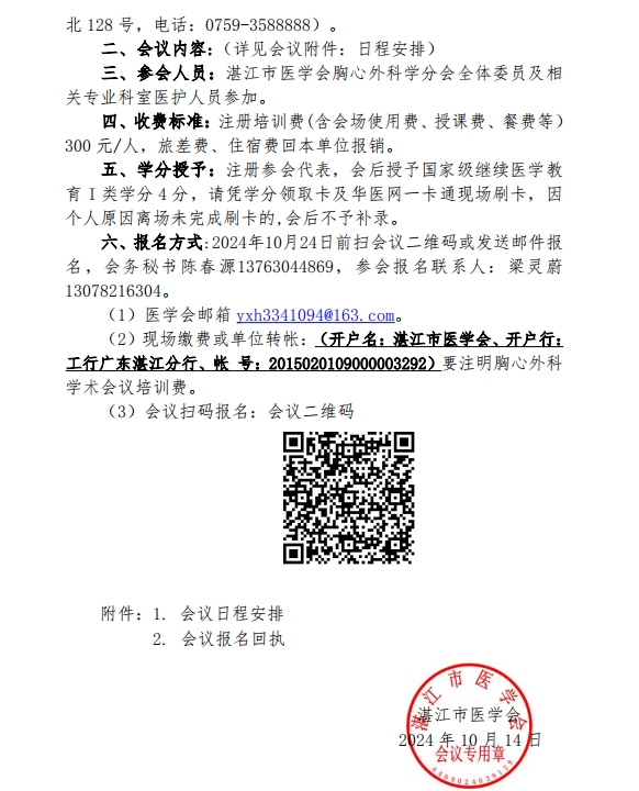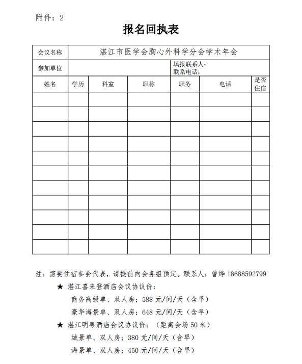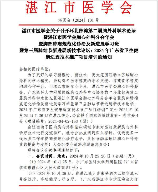 关于湛江市医学会召开环北部湾第二届胸外科学术论坛暨湛江市医学会胸心外科分会年会的通知