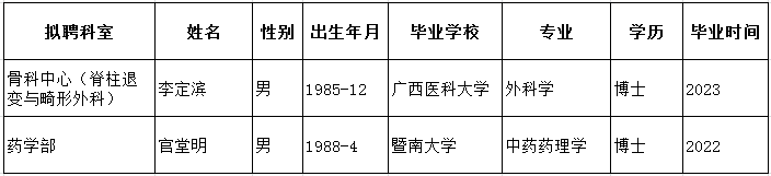 广东医科大学附属医院拟引进博士人员名单公示