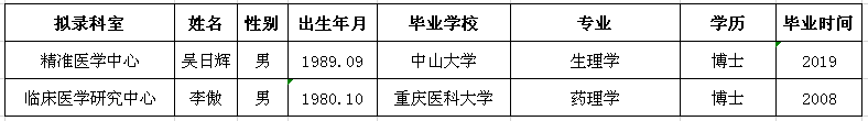 广东医科大学附属医院2020年拟引进博士人员名单公示