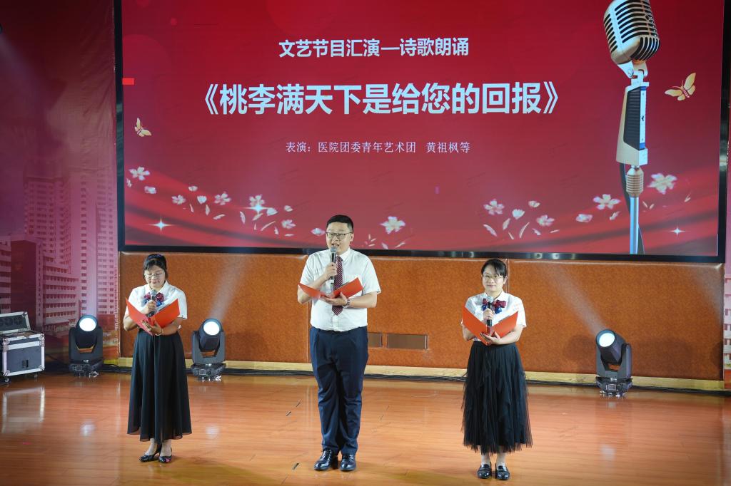 医院团委青年艺术团在会上还为大家带来街舞《本草纲目》、诗歌朗诵《桃李满天下是给您的回报》、情景剧《深耕红土地》等精彩表演。(图、文/刘喆)