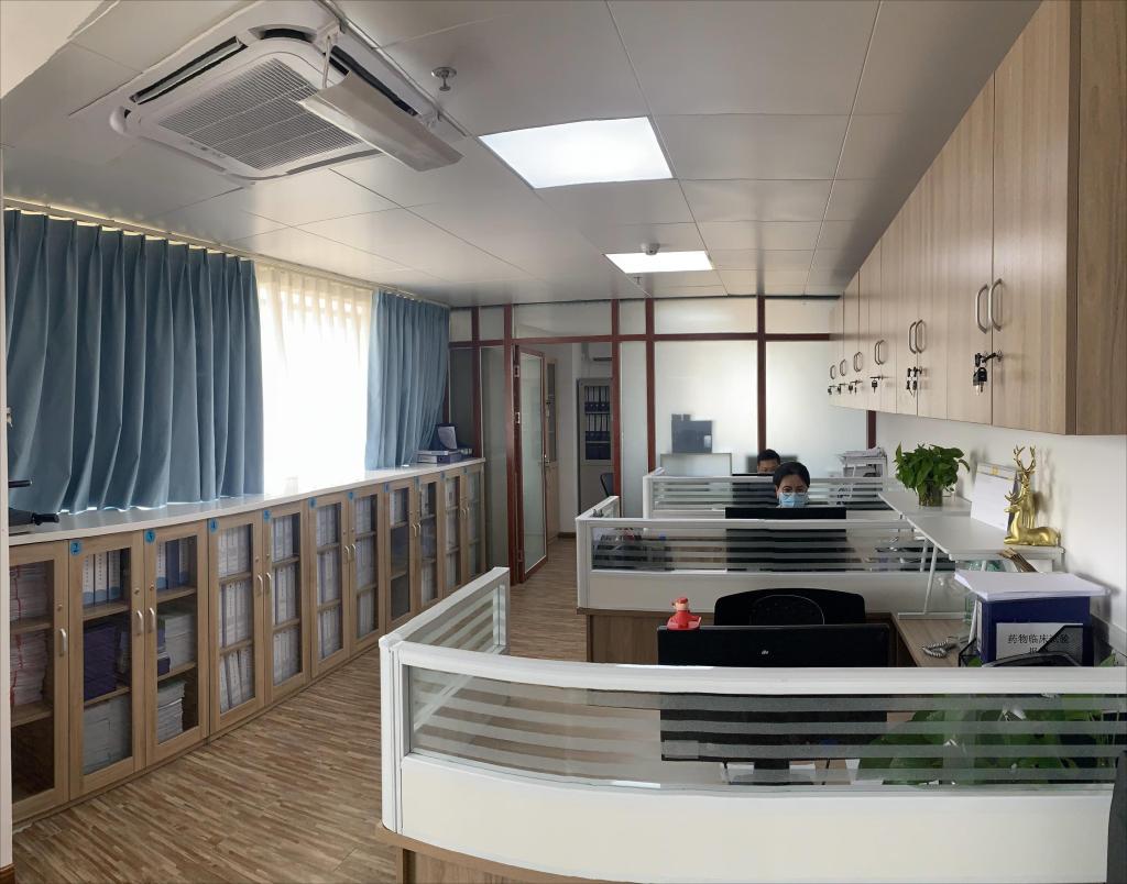 机构设有机构主任1名、机构办公室副主任(主持工作)1名,机构办副主任兼秘书、质控员、财务管理员及资料管理员各1名,中心药房专职药师2名。具有独立的机构办公室和独立的档案室,配备相应的办公设备及档案资料存储设施。