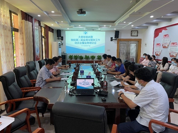 8月20日,我院召开大型医院巡查医院层面第二轮自查与整改工作动员会暨业务培训会,党委书记李明意,党委副书记、副院长(主持工作)刘华锋,自查工作领导小组成员、医院纪委委员、各自查工作组组长及全体组员参加会议。会议由医院党委副书记、纪委书记林挺葵主持,